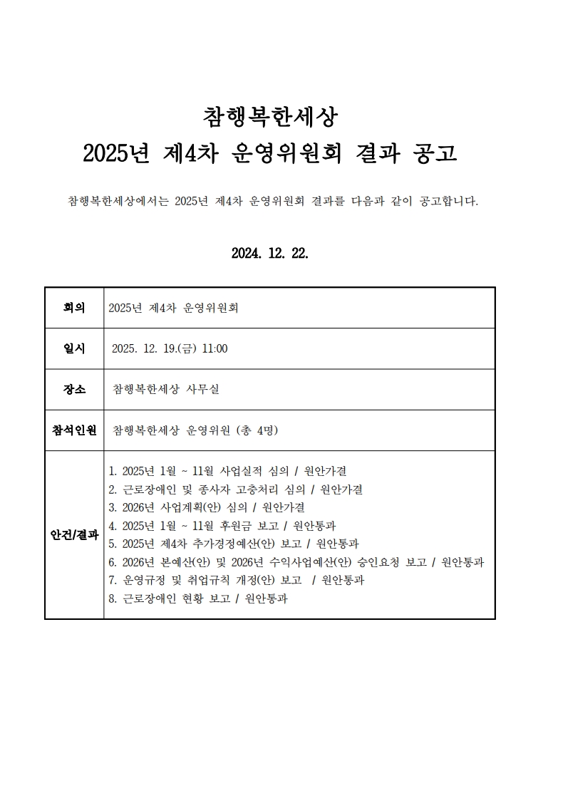참행복한세상 2026년 예산을 첨부파일과 같이 공고합니다.